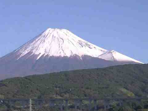 コメント:富士山の南側の東海道線の列車に乗り、数え切れないほどの回数通過しましたが、こんな見事な映像を撮ることができたのは初めてです。動画から電柱や電線が写ってない瞬間を選びました。 |