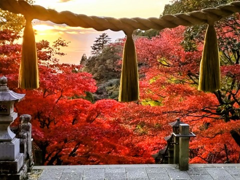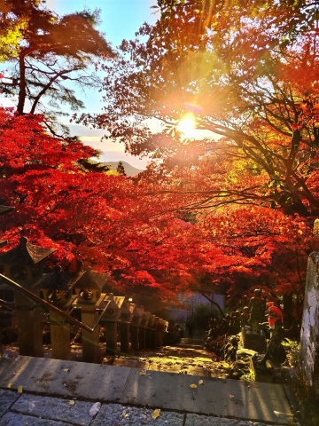 コメント:相模湾から登る朝日が石段のモミジを真正面から照らします。マニュアルモードでホワイトバランス等を設定していますが、それでも目で見たような色が出ません。