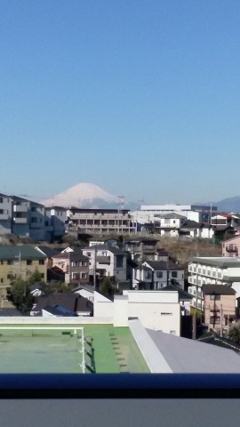 コメント:春先の澄みきった街並みの奥空に遠く富士を眺める
