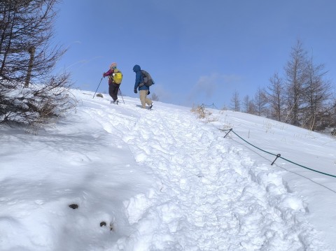 コメント:この日は友人ご夫妻と入笠山へ雪上ハイキング。頂上はもうすぐです。